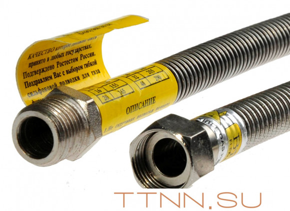Газовая гибкая подводка будет незаменима как в частном доме, так и в квартире многоквартирного дома и применяется в бытовых целях для присоединения газовой плиты, газовой колонки, водонагревателя или газового котла. Крепление гибкой подводки к газовой магистрали и газовому оборудованию осуществляется при помощи уплотнительных шайб и накидных гаек.
